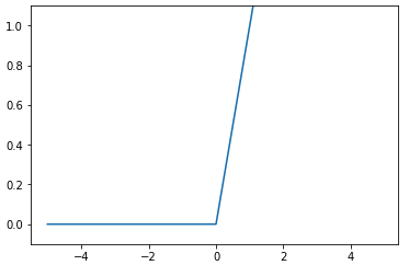 ReLu 함수도 신경망에서 주로 이용하는 함수중 하나로, 입력이 0을 넘으면 입력을 그대로 출력하고 0이하이면 0을 출력한다.