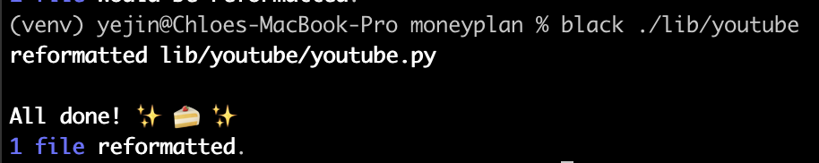 --check 옵션을 실행하면 포맷팅이 필요하다고 귀엽게 알려준다.