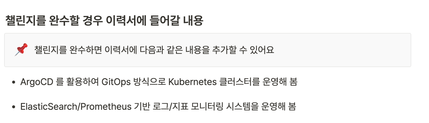 나는 numble에서 실전 가이드 프로젝트_Kubernetes로 모니터링 시스템 구축하기를 진행하고 있다. 사이드프로젝트를 해야겠다는 생각과 쿠버네티스에 대한 공부를 하고 싶다는 생각을 하고 있던 참이었는데 우연히 이 두 가지를 충족시킬 수 있는 프로그램을 발견하게 돼서, 심지어 가격도 해볼 만해서 바로 결제했다. ㅋㅅㅋ 특히 여기에 혹했다. ㅎ 프로젝트는 팀을 이루어 진행하지만 결과물은 각자 제출해야 된다. 각자 제출이다 보니 팀원 스케줄에 너무 얽매이지도 않고 처음부터 끝까지 다 해볼 수 있다는 장점이 있다.! 우리팀은 카톡방을 하나 파서 모르는 것을 질문하며 진행 중이다. (아직까지는 순항중..!) 나는 쿠버네티스 지식이 전무한 상태에서 시작했기 때문에 노드, 파드 등 개념부터 argoCD, kib..